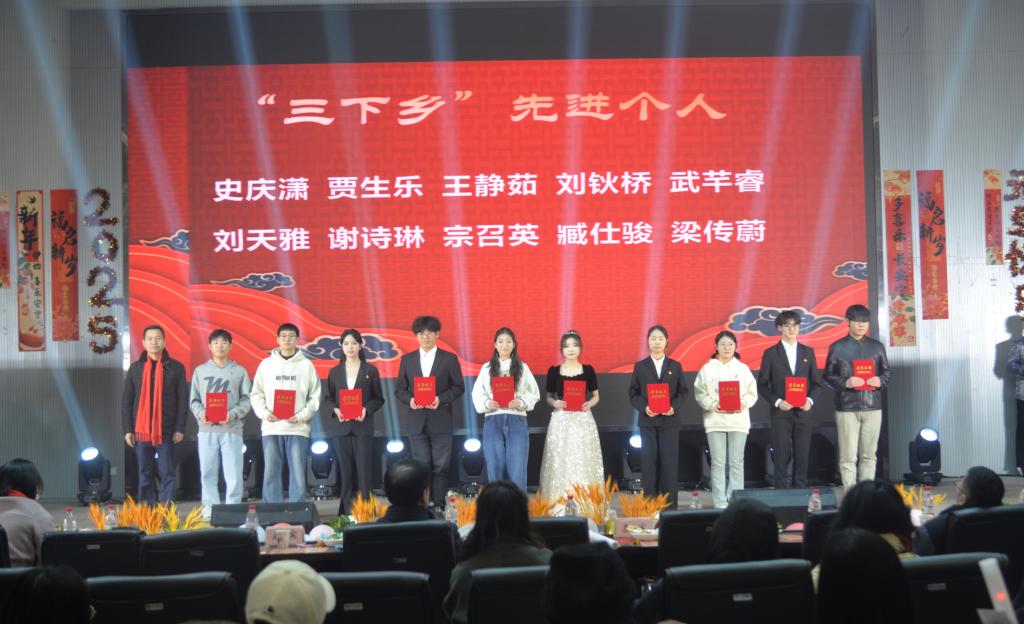本次晚会以“灵蛇圆梦·耕读兴农”为主题,分为“携手共进·编织农梦”“凝心聚力·同耘农愿”“笃行志远·共续农情”三个篇章,每个篇章分别设“优秀学生先进个人”、“三早进先进个人”、“学科竞赛和三下乡先进个人”等颁奖,晚会中还穿插着三轮抽奖环节。师生共同登台,用歌舞、小品、诗朗诵、乐队表演等多种类型的11个节目,为现场观众带来了一场精彩的视听盛宴,彰显出农学人昂扬奋进的精神面貌。