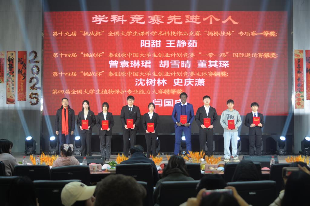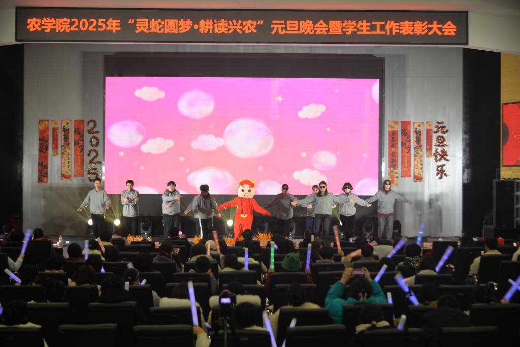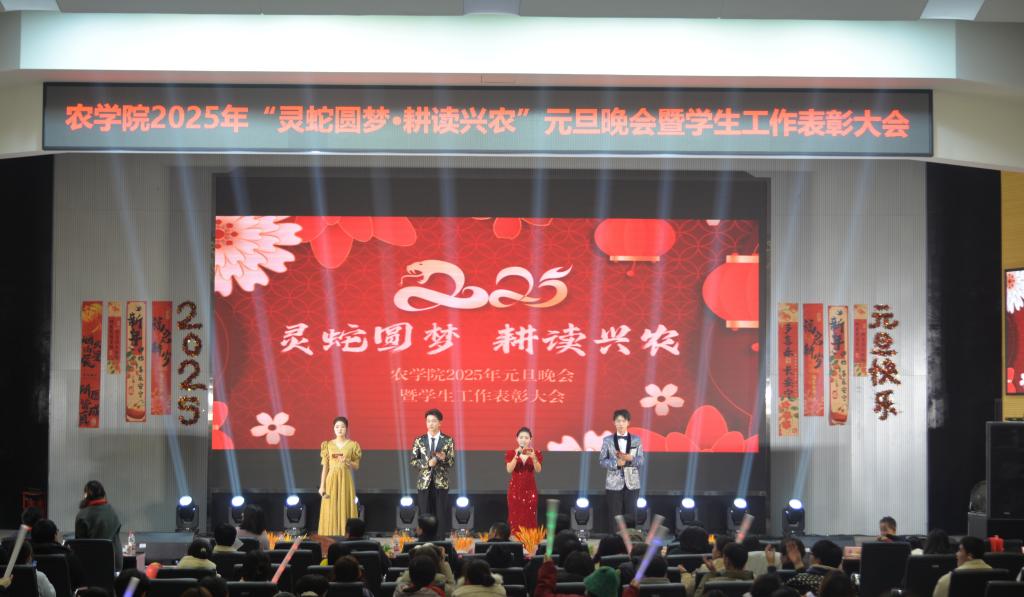 (通讯员:吴静宜 付雪娇 严树彬 向建华 涂星雨)祥龙回首辞旧岁,金蛇起舞迎新年。12月31日晚,华体会平台(中国)2025年“灵蛇圆梦·耕读兴农”元旦晚会暨学生工作表彰大会在农科大楼1058隆重举行。参加本场晚会的嘉宾有党委学生工作部部长张科、校团委书记毛德波、党委研究生工作部副部长黄龙、党委学生工作部副部长李秋果、校团委副书记信晓阳、平台与实验室管理处副处长谭亮魁、党委宣传部科长李胜杰及兄弟学院的师生,华体会平台(中国)党委书记周锦华、党委副书记尹小华及学工队伍、任课老师参加晚会。