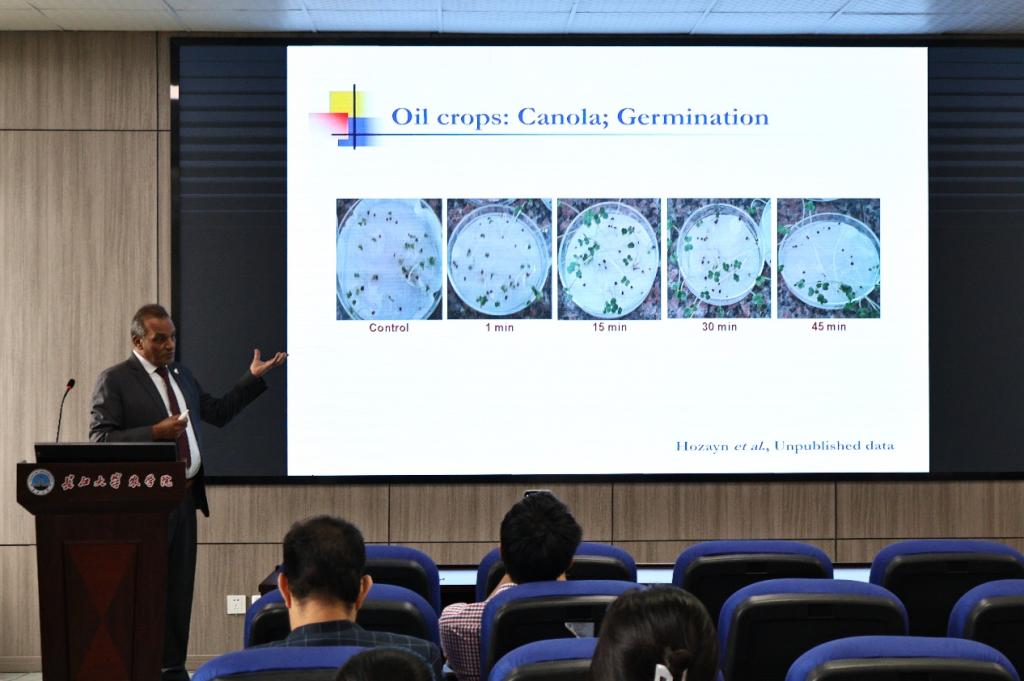 (通讯员 覃元)9月12日上午,应华体会平台(中国)曾凡荣教授的邀请,埃及国家研究中心农业与生物研究所代理院长 Mahmoud Hozayn 教授,在长江大学西校区农科大楼 3073 为农业相关专业师生作题为“Agro-Physics Technology: Magnetic Water for Higher Crops Productivity”的学术报告。