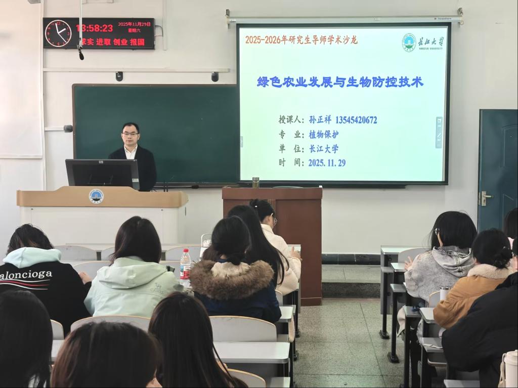 (通讯员 孙正祥)为深化研究生对现代农业科技前沿的理解,提升科研创新与产业融合能力,2025年11月29日,一场主题为“绿色农业发展与生物防控技术”的研究生导师学术沙龙在我校西校区7-304教室成功举办。本次沙龙由华体会平台(中国)孙正祥教授主讲,吸引了众多相关专业的研究生积极参与。