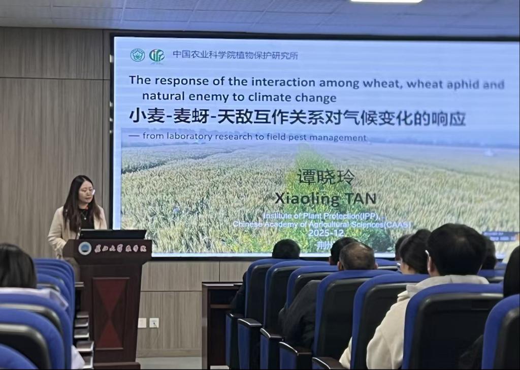 报告结束后,现场互动热烈,大家围绕气候变暖对“小麦蚜虫天敌”多营养级互作的影响机制、极端天气下农业生态系统的响应规律、蚜虫种群暴发与次要害虫风险等科学问题展开了深入讨论,进一步拓展了我院师生对农业害虫可持续治理路径的认识。