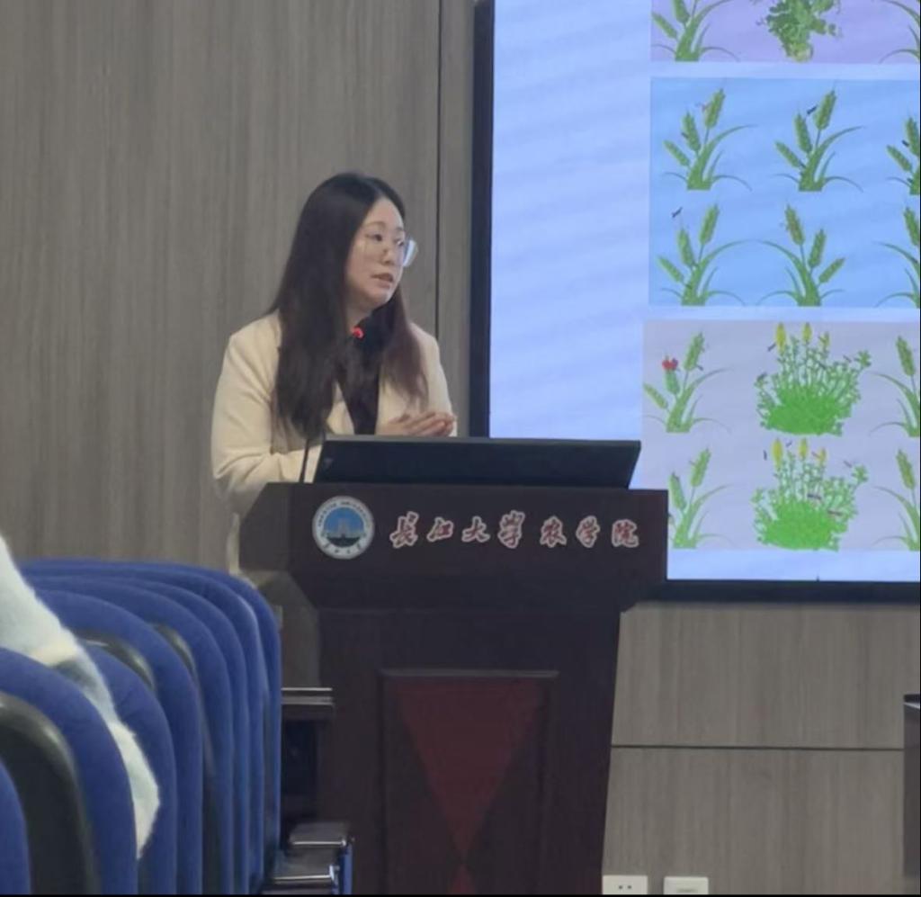 谭晓玲本科毕业于长江大学植物保护专业,她结合近50年气温变化数据和极端天气案例,揭示气候变暖对农业生态系统的显著冲击效应及机制,深入剖析了跨纬度麦田系统中“小麦-蚜虫-天敌”不同营养级对气候变暖的响应机制,既从“自下而上”和“自上而下”双路径解读了气候变暖影响蚜虫暴发的内在逻辑,也揭示了变暖加剧麦蚜生态位竞争、诱发次生害虫暴发的新风险。在技术应用环节,她分享了集成的“推-拉-杀”绿色控害方案,实现了麦蚜种群减少30%-50%、农药用量降低超40%的成效。