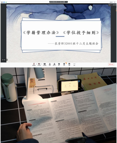 其中,农学职32001班邀请了何艺琴老师参加此次的学习,全面学习、了解了《学籍管理办法》、《学位授予细则》内容,同学们认为这一举措更有利于对高素质型人才的培养。同学们表示在今后的工作和生活中,会严格要求自己,努力发展,完善自我并全面落实《学籍管理办法》。