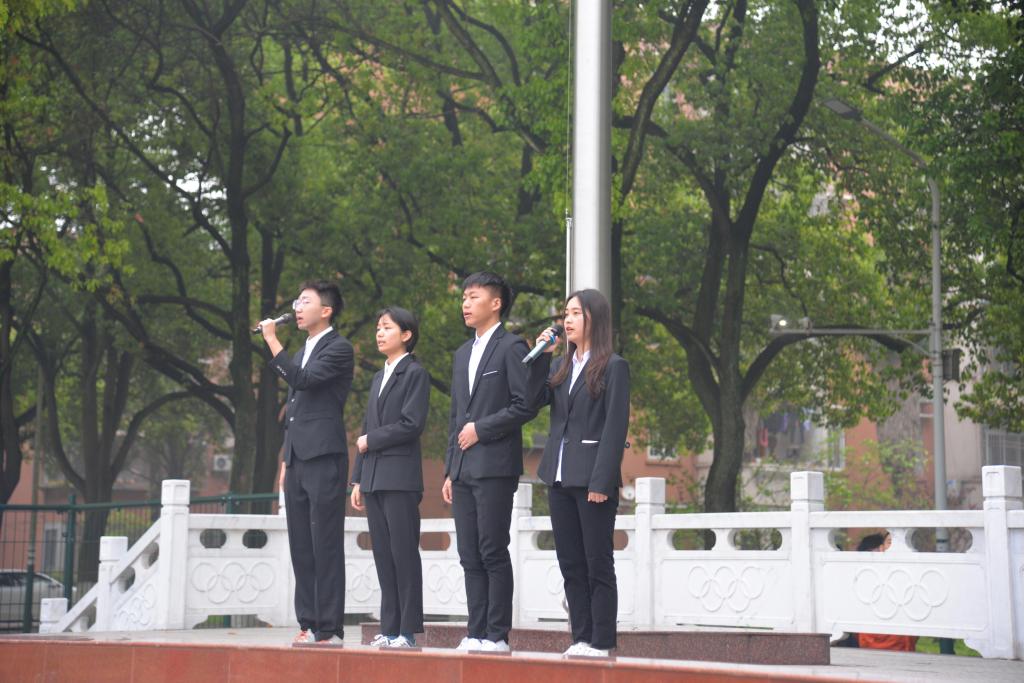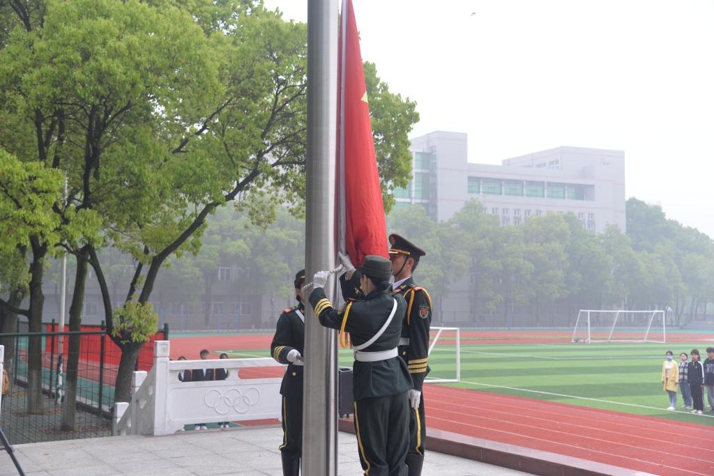 紧接着,国旗护卫队的旗手们迎着晨风,以饱满的热情,庄严地护卫五星红旗来到国旗台下。伴随着激昂的《义勇军进行曲》,鲜艳的五星红旗冉冉上升。全体在场师生注目肃立,心潮澎湃。