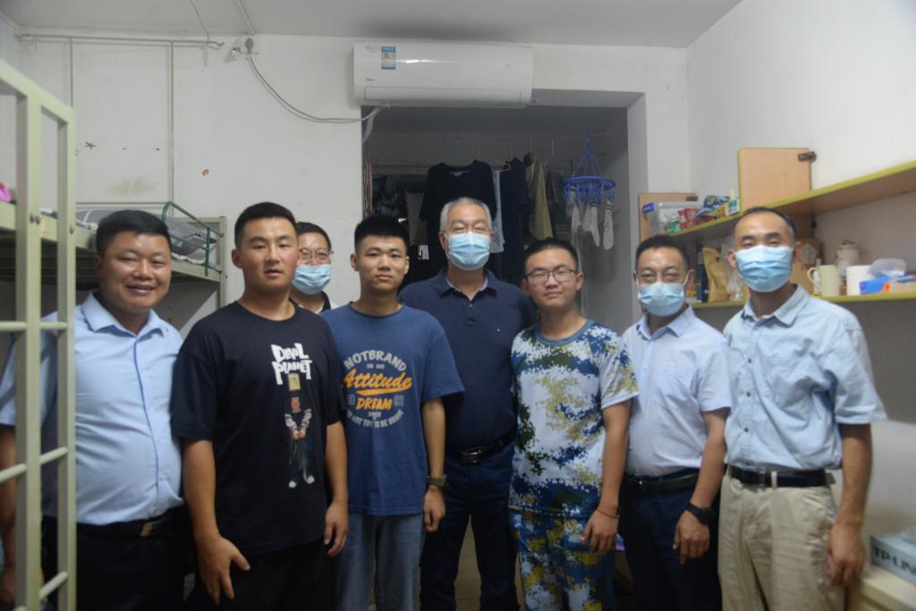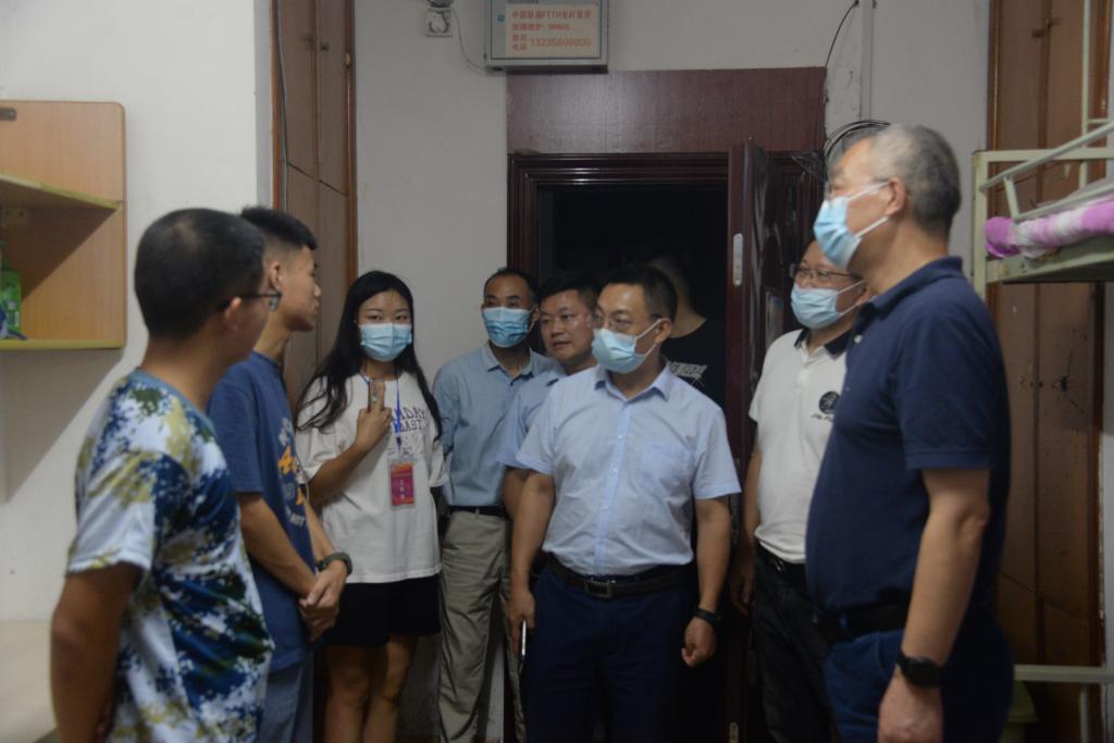 通讯社讯(学生记者 宋健玲 谭昌鑫/摄 张玉藟/文)9月5日傍晚6:50,校长冯征、院长李俊凯、党委书记冯发明、副院长张文英、党委副书记谭亮魁以及各级辅导员、新生班主任前往我院风华园公寓看望21级新生,送上温暖的关怀和问候。