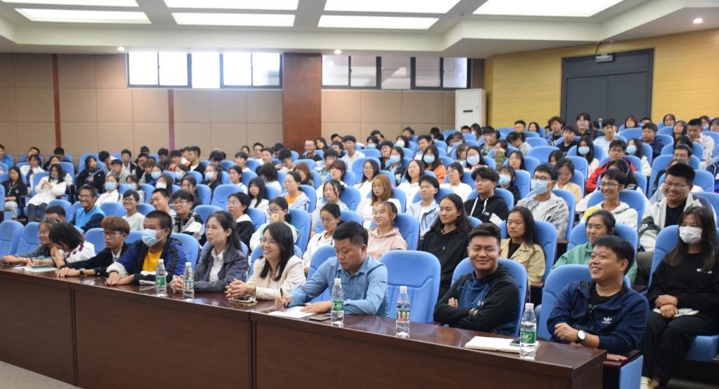 会议伊始,党委副书记谭亮魁首先向同学们郑重介绍了校友江风晨,他强调同学们应该意识到未来规划的重要性,并提出围绕此次讲座主题的三个问题“你是谁?你能去哪?你能做什么?”。