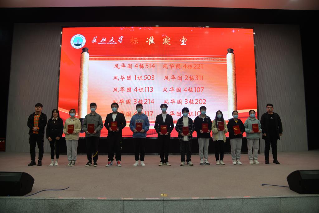 在大会尾声之际男女寝室联谊共创抽签环节则将现场的气氛推向了高潮。党委副书记谭亮魁说到:“寝室是同学们在学校的家,是大家生活与学习的重要场所,希望大家能一起行动,运用好团队的力量,将寝室建设的更加文明健康、团结友爱,使华体会平台(中国)的寝室建设成为长江大学寝室建设的标杆。”