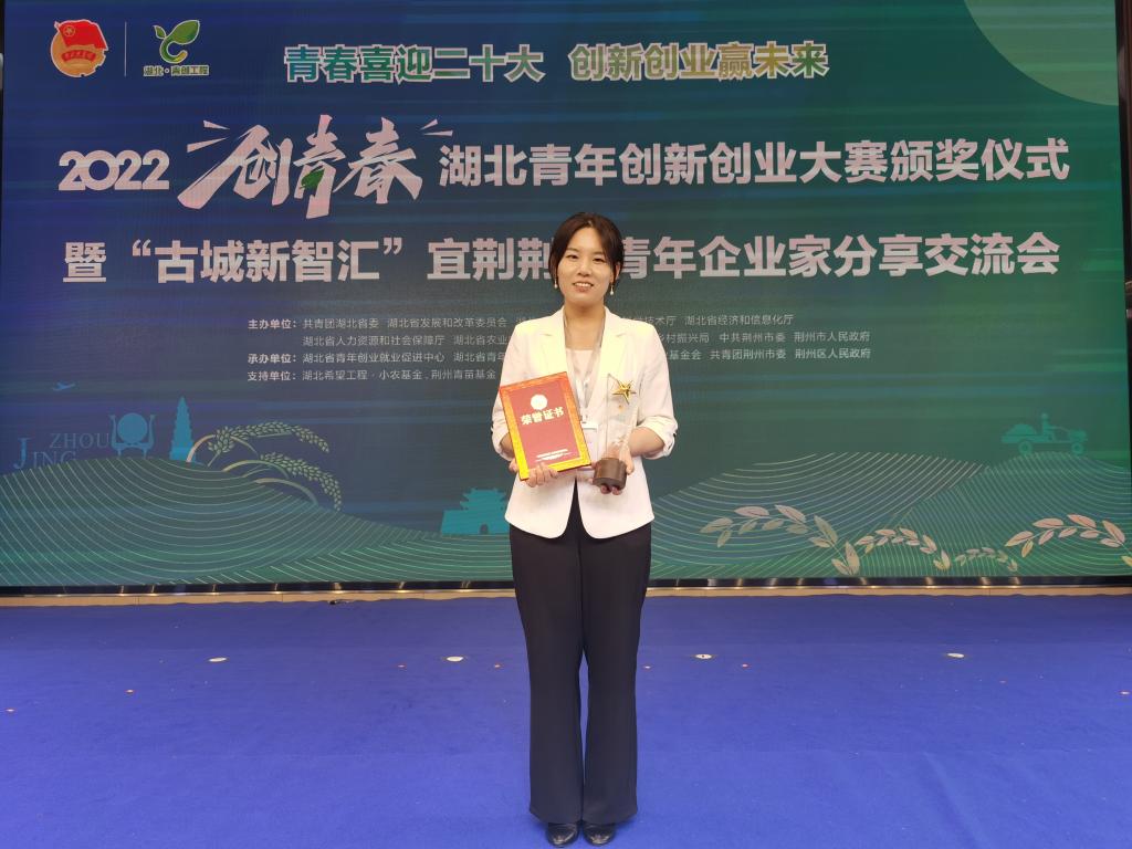 (通讯员 李雅倩 夏应翔)青春喜迎二十大,创新创业赢未来。6月24日,由荆州团市委承办的 2022年“创青春”湖北青年创新创业大赛在荆州举行。我院周燚教授指导的“猪粪转化育苗基质的资源化利用技术”项目获得乡村振兴专项决赛金奖,团省委书记周森锋、市委书记吴锦亲自为主讲人柴梦莹颁奖。