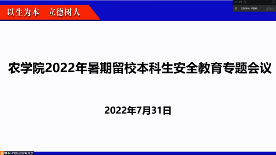 (通讯员 郝梨 李慧明)为明确留校学生管理纪律、加强留校学生安全教育,使大家度过一个安全、愉快的暑假,7月31日上午10点,我院在腾讯会议召开华体会平台(中国)2022年暑期留校本科生安全教育专题会议。各留校负责人参加了会议,本次会议由辅导员付雪娇老师主持。
