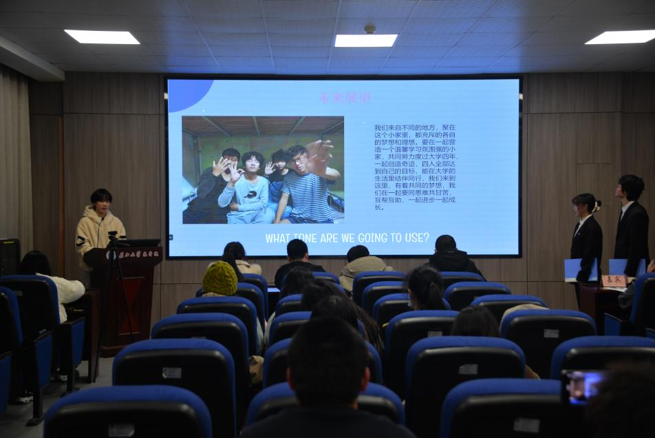 活动开始前,主持人向大家介绍评分细则,包括着装要求、答辩内容、PPT制作等。紧接着,选手们依次上台进行答辩,答辩内容涵盖寝室成员介绍、寝室风采展示、寝室文化宣传和寝室未来展望。“同流合屋”、“糖三角”、“永瘦宫”、“向阳而生”等独特的寝室名称给现场观众留下深刻的印象。“她是我们寝室的手工小能手,为我们编织了很多好看的手工艺品,我们非常喜欢,没有她的话,日常怎么会有惊喜啊。”“我们寝室制定了很好的寝室公约,如晚上11点熄灯,早上6点30分起床,我们一起上课、一起复习,大家一起进步和成长,我们成为了无话不谈的好姐妹!”一句句温馨的话语,饱含着寝室成员深厚的友谊。