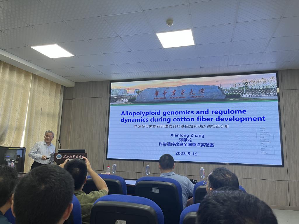 (通讯员 柴梦莹)奋力奔跑二十载,筑梦振兴向未来。5月19日下午,我院特邀华中农业大学棉花育种团队张献龙、金双侠两位教授作学术报告。报告分别由我院李俊凯教授、陈仲华教授主持,在西校区农科大楼3073报告厅举办,学院上百名师生参加。