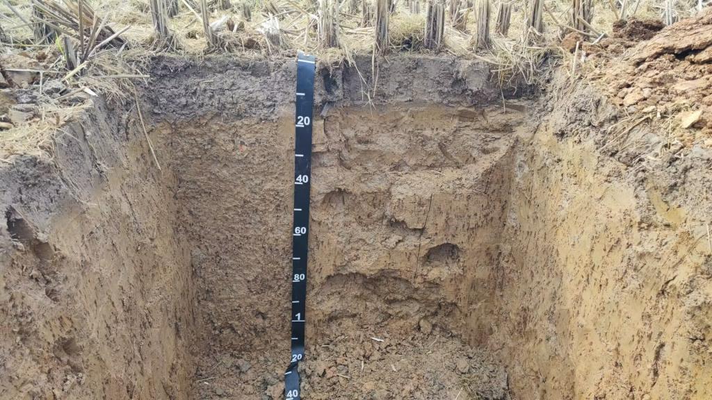 (通讯员 李继福)坐标某位点,一块已完成水稻收获的水田,位于掇刀区团林铺镇鸦铺村,是掇刀区第三次土壤普查第一个土壤剖面采集点,也是荆门市首个土壤剖面采集点。经过前期室内校核和野外勘察,9月28日,长江大学外业调查与采样队顺利完成第一个土壤剖面样品的调查采集工作。