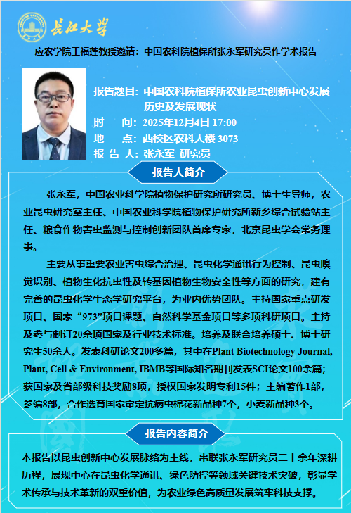 华体会平台(中国)2025年学术报告(二十九):中国农科院植保所农业昆虫创新中心发展历史及发展现状