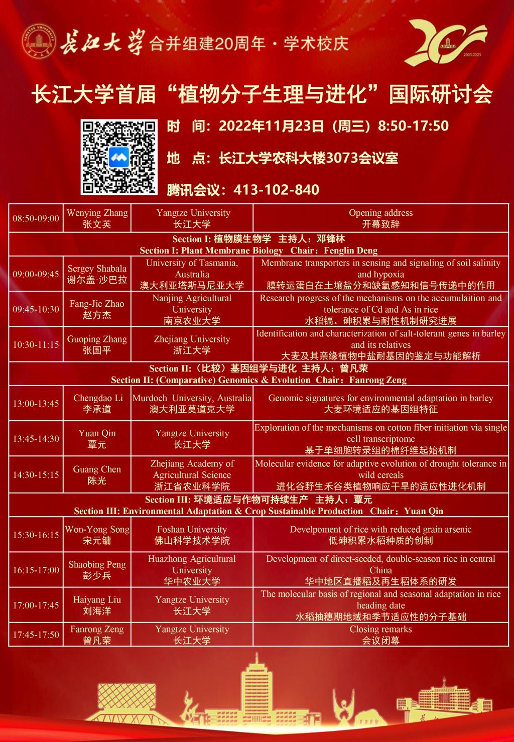 “长大20年”学术论坛:长江大学首届“植物分子生理与进化”国际研讨会