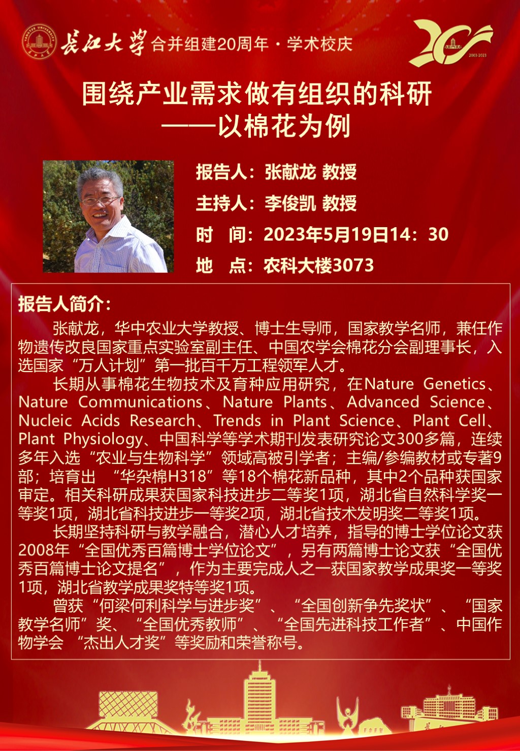 “长大20年”学术论坛暨华体会平台(中国)学术讲坛:围绕产业需求做有组织的科研——以棉花为例