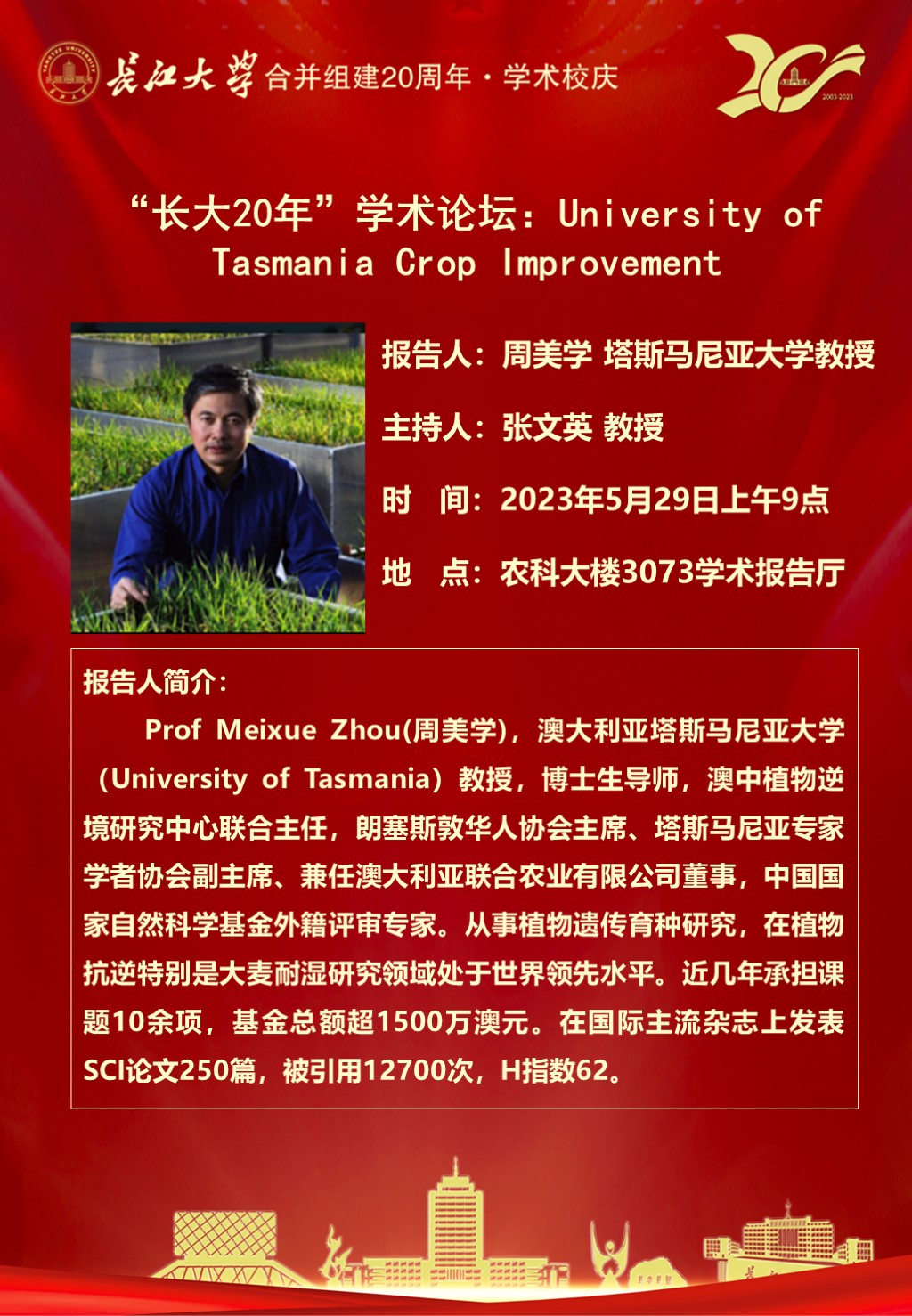 “长大20年”学术论坛暨华体会平台(中国)学术讲坛:University of Tasmania Crop Improvement