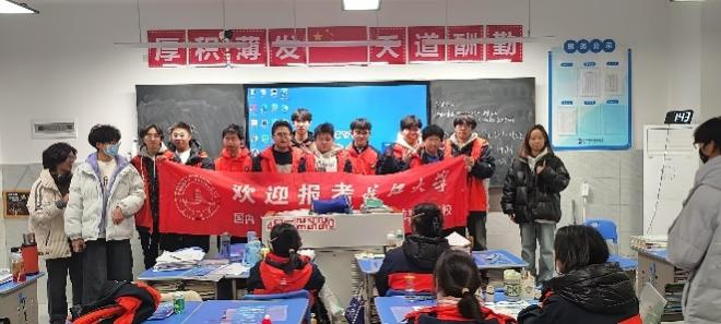 寒假期间张可欣和她的小伙伴们以长江大学学子身份回到高中母校宣传,她们拜访了曾经的高中老师,老师们也关心的询问了其在大学的生活和学习状态,寒暄过后便和老师一起去布置场地和走了一下流程。随着学弟学妹们的入场我们的活动也正式开始,张可欣首先介绍了长江大学的基本校情和科研成果,还详细的讲解了长江大学历年来对于技能高考批次招收人数的变化,然后还与学弟学妹们进行了一些互动,向他们解答了关于长江大学的一些疑问和分享了一些学习经验,最后还建立了一个群聊,方便为学弟学妹们随时解疑答惑。