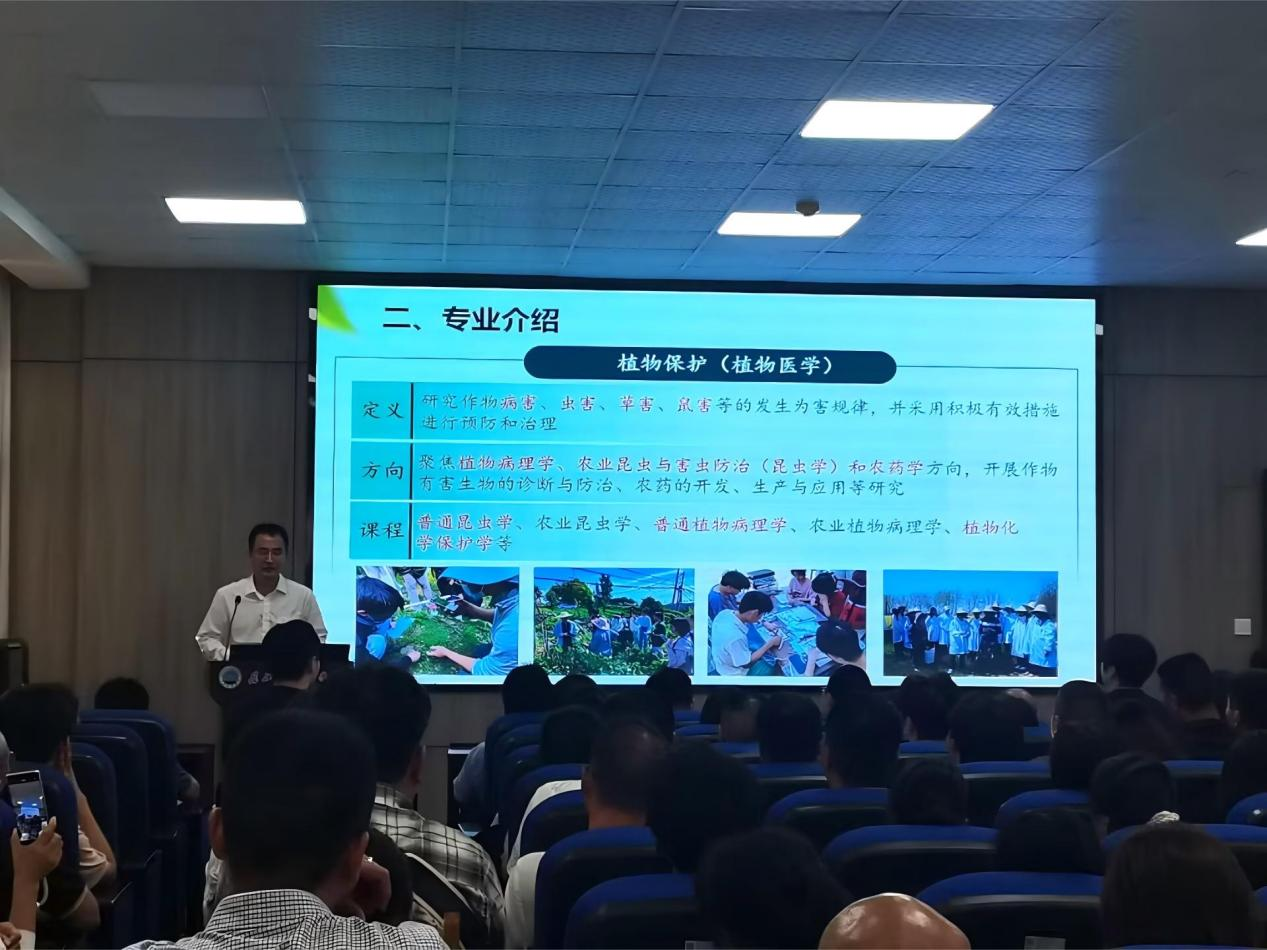 邓建新教授对植物保护专业进行了介绍,涵盖专业概况、专业内容以及毕业生去向等方面,让家长们清晰了解该专业的培养目标与就业前景。