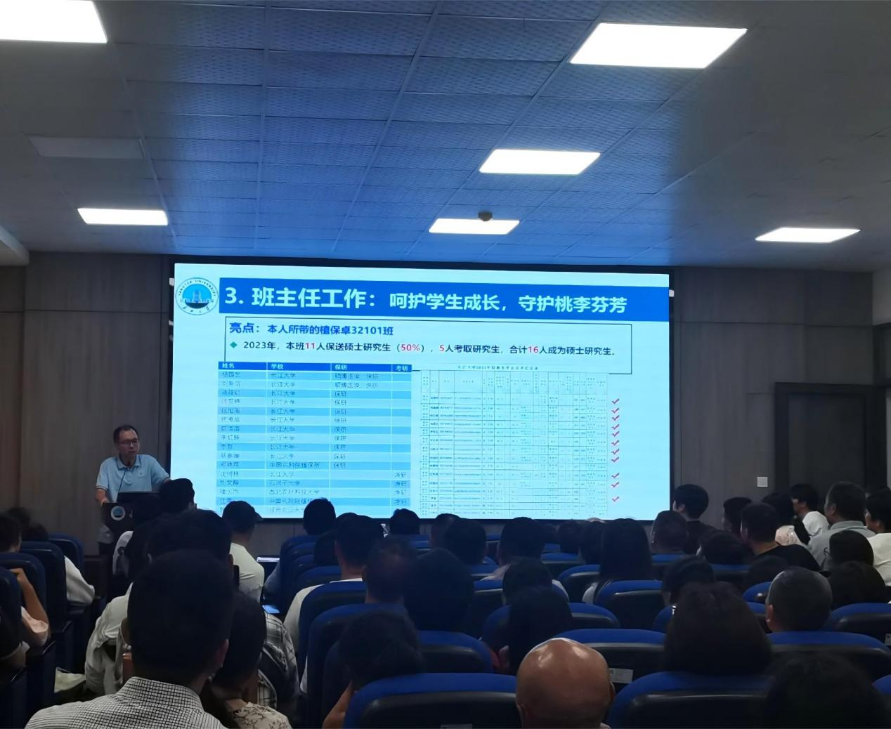 马东方教授阐述了班主任工作理念,“呵护学生成长,守护桃李芬芳”,并强调以研促教,助力学生成才。