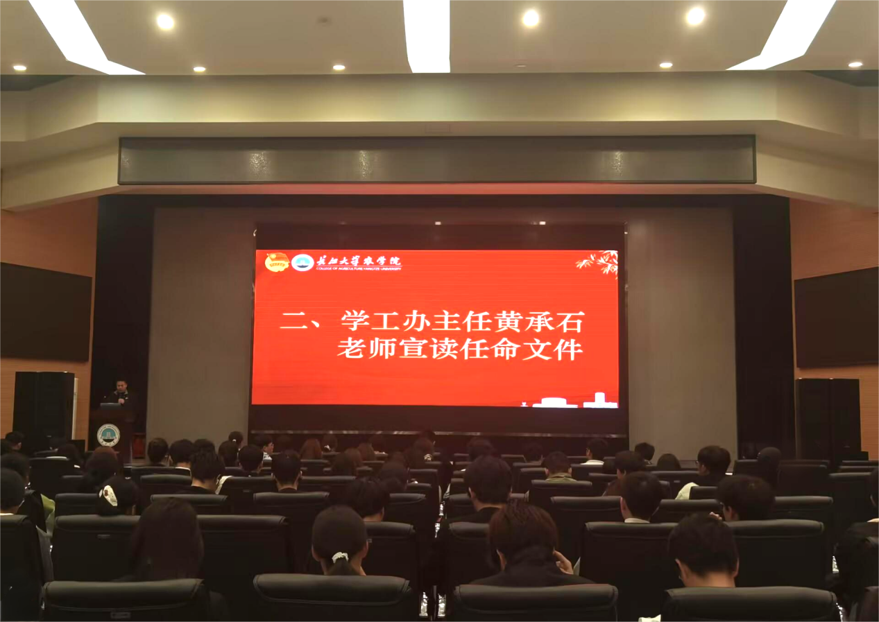 (通讯员 吴泓萱 张源康 胡雪晴/文 向建华 何遥 孙夏彦 安菲菲/摄)为加强学生干部队伍建设、提升其综合素质与工作能力,表彰优秀学生干部并激励全体成员奋发进取,10 月 19 日下午 2 点半,华体会平台(中国)于农科大楼 1058 报告厅召开第二十二届团委学生会成立大会。院党委副书记尹小华、学工办主任黄承石、团委书记付雪娇等 6 位老师,及第二十二届团委学生会全体成员、第五期青马班学员、艺术团全体成员等参会。会议由崔舒淇主持。