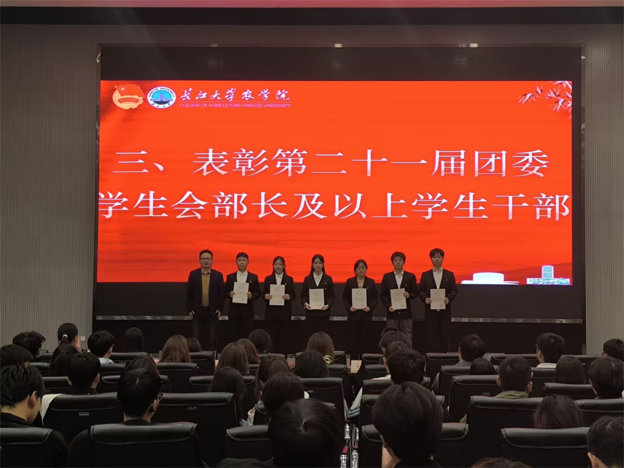 大会伊始,全体成员起立奏唱团歌,大会在激昂的旋律中拉开序幕。学工办主任黄承石宣读任命文件,明确了新一届团委学生会的组织架构与人员任命。随后,大会对第二十一届团委学生会主席团及部长(含宿委会)进行表彰,尹小华等老师为其颁发聘书,肯定他们过去的辛勤付出。