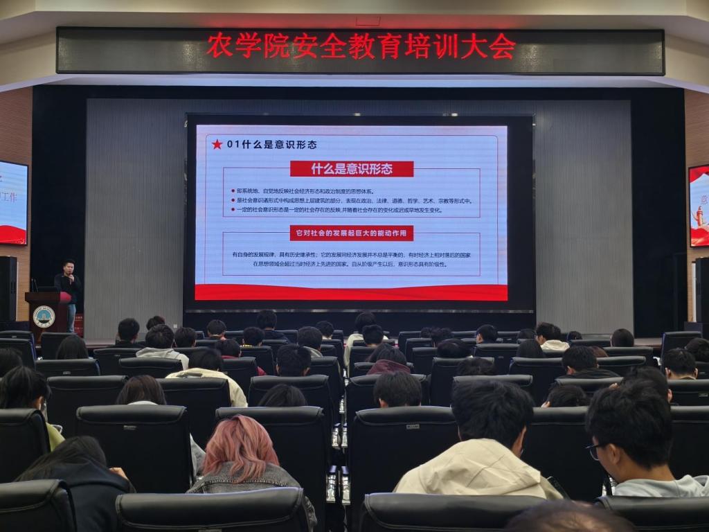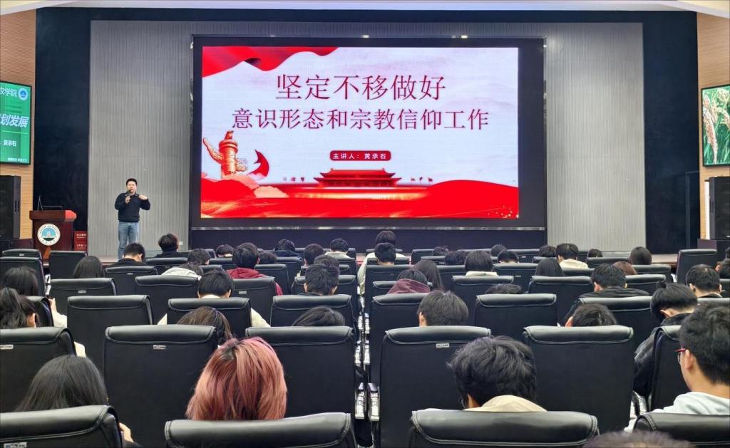 (通讯员 吴泓萱 张源康/文 胡雪晴 向建华/摄)为切实强化学子意识形态认知,提升安全防范综合能力,引导青年学子树立正确宗教观与国家安全观,11 月 11 日,华体会平台(中国)在农科大楼 1058 报告厅面向 2025 级全体新生举办意识形态暨安全教育专题讲座。本次讲座由学工办主任黄承石主讲,为新生们带来了一堂兼具理论深度与实践指导意义的思想安全必修课。