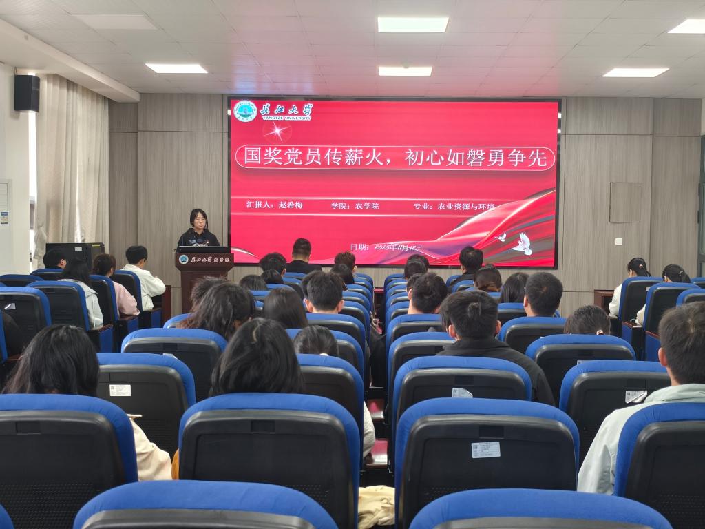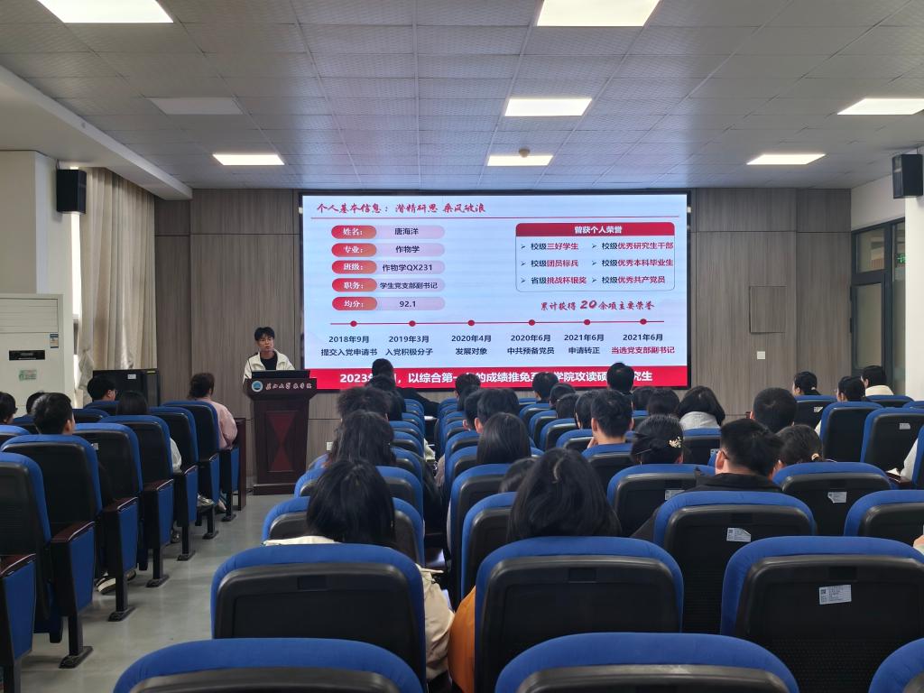 (通讯员 郑怡乐/文 郝梨/摄)党建领航研途路,先锋传薪启新程。为深入学习贯彻党的二十大精神,夯实研究生党支部战斗堡垒作用,11月12日中午,华体会平台(中国)举行“一院一品”研究生党员学术经验分享活动。特邀学院3名研究生国家奖学金获得者:唐海洋、文泳、赵希梅作为主讲人为全体研究生党员和入党积极分子分享学术经验。
