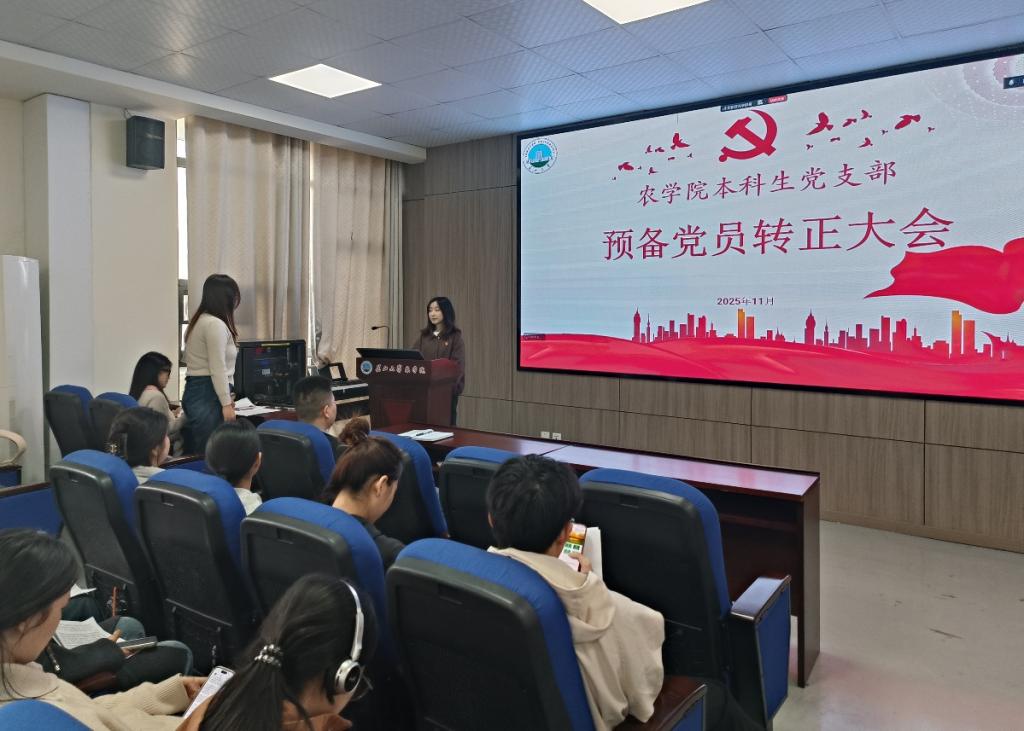 (通讯员 武芊睿)为进一步壮大和优化党员队伍,增强党组织的凝聚力与战斗力, 11月19日,华体会平台(中国)本科生党支部在农科大楼3073召开2025年下半年预备党员转正大会,讨论预备党员肖雅萱等3名同志的转正问题。应到会党员19名,实到会19名,应到会有表决权的正式党员7人,实到会7名,超过半数,符合党员发展流程。会议由党支部书记黄承石老师主持并作总结发言。