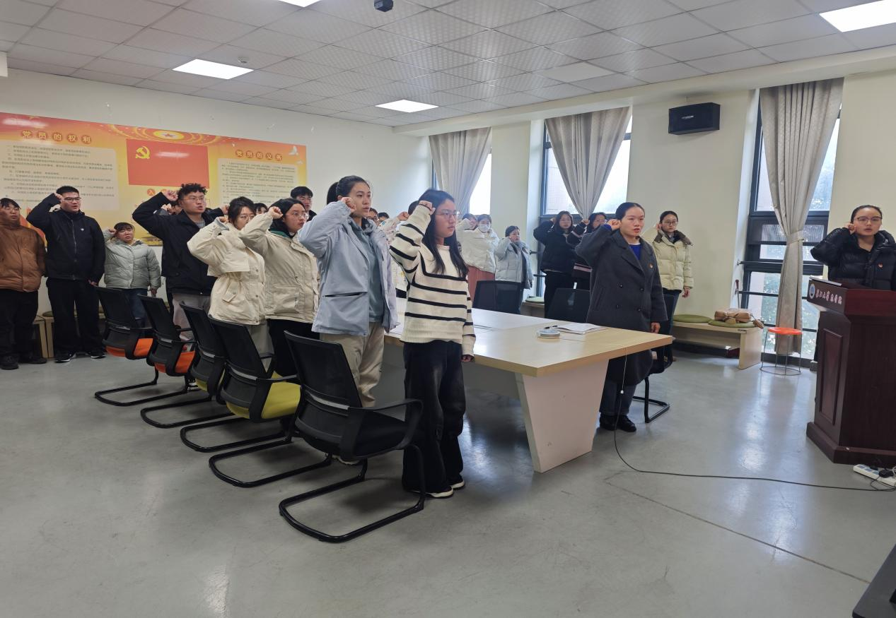 会议伊始,胡雪晴同志带领全体党员重温入党誓词,王思婷同志对本月党费交纳情况进行说明,全体党员诵读《中国共产党章程》第十九条。